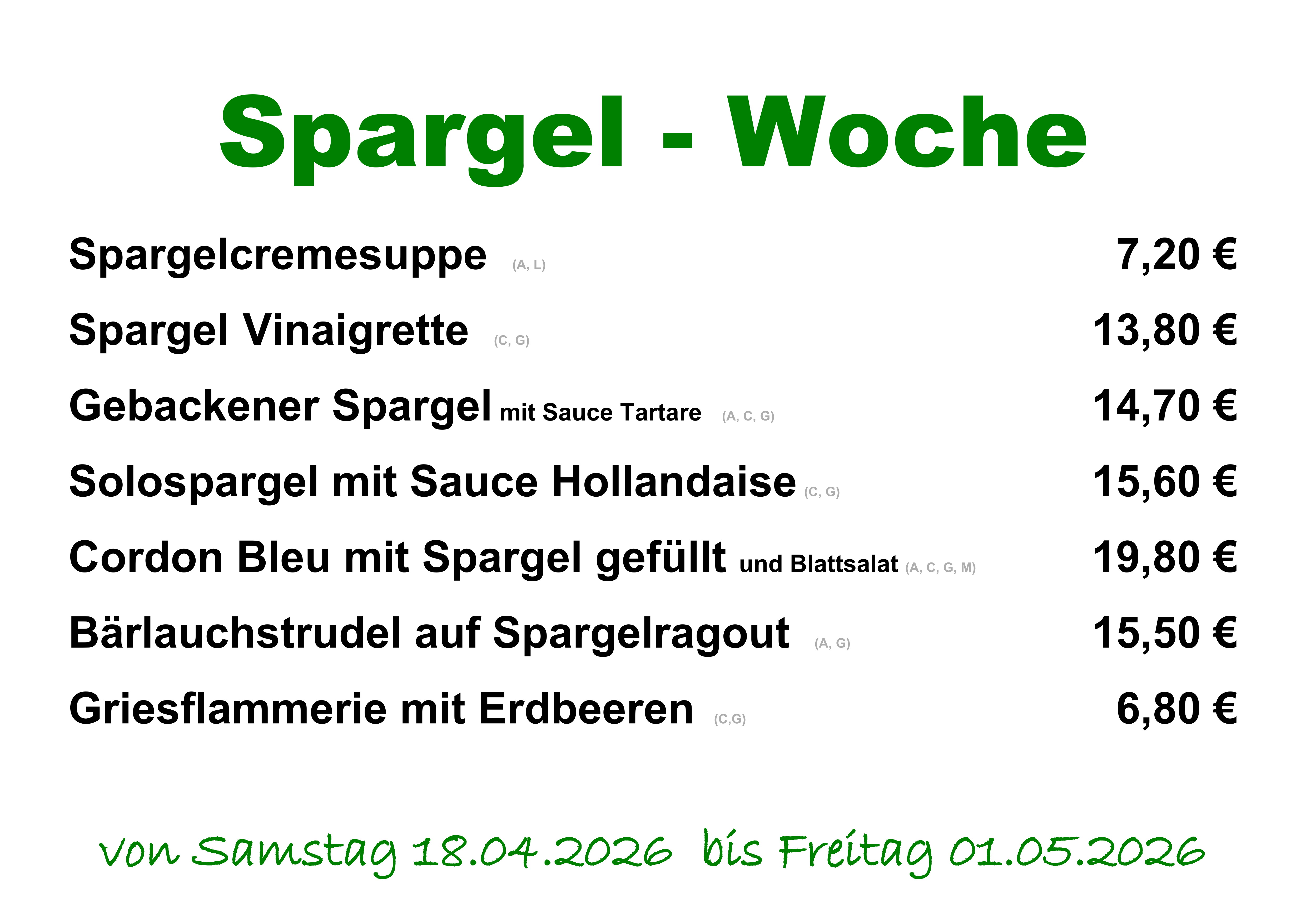 MO bis FR gelten die Menüangebote von 11:30 bis 15:00